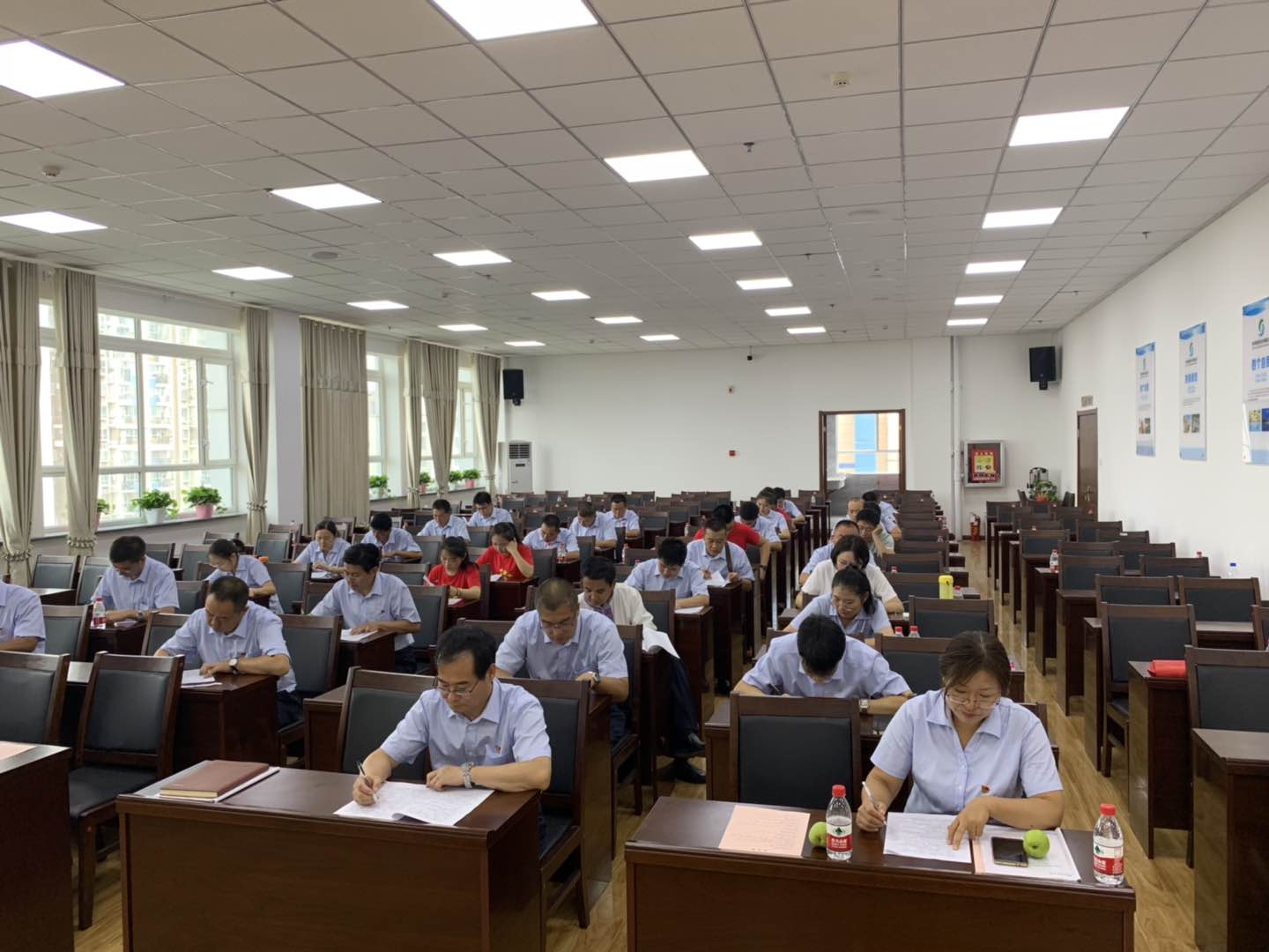 為深入開展第二十一個黨風廉政教育月活動,教育引導公司全體黨員、管理人員增強“四個意識”、堅定“四個自信”、做到“兩個維護”,錘煉忠誠干凈擔當的政治品格,激勵黨員干部勤政廉潔,按照上級黨委的統一部署和安排,2019年7月19日上午,庫爾勒銀泉供水有限公司組織公司領導班子、中層管理人員和黨員開展黨紀法規和德廉知識閉卷測試。此次活動共40人參加。