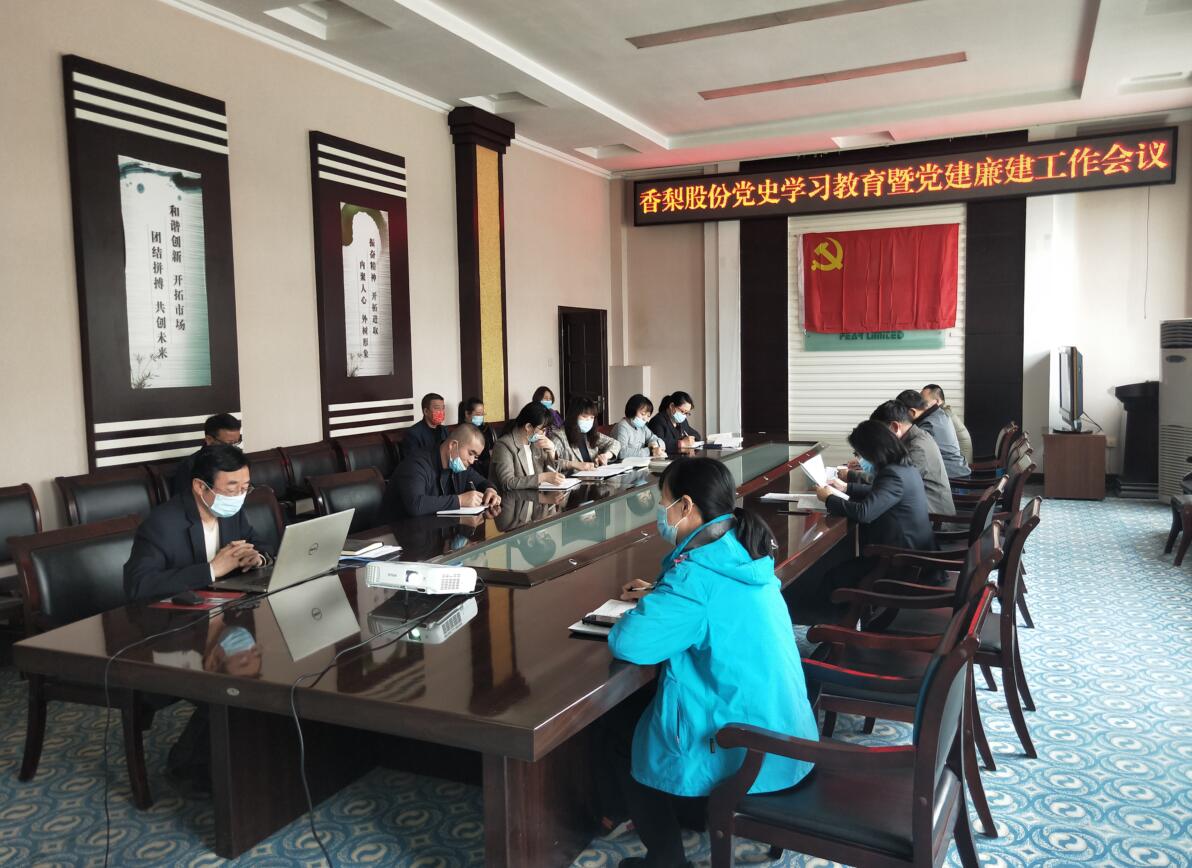 4月8日,庫爾勒香梨股份有限公司召開黨史學習教育暨黨建廉建工作會議。會議對目前開展的黨史學習教育工作進行了推進指導、總結回顧了公司過去一年的黨建工作,安排部署2021年黨建和廉建工作。公司黨委成員、各支部黨員、部門負責人參加會議,黨委書記王偉義同志作動員講話。