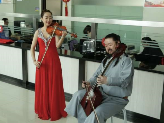 活動現場,幾名年輕的職工深情唱起《我和我的祖國》,悠揚的小提琴、馬頭琴聲也隨之緩緩響起,數名少數民族伴隨歌聲翩翩起舞,大家揮舞著手中鮮紅的國旗,跟著清唱,把活動推向高潮。不少繳納水費的用戶被現場的氣氛所感染,紛紛拿出手機拍照、錄影,跟隨音樂共同唱響《我和我的祖國》,揮動的國旗將收費大廳渲染成了激情澎湃的紅色海洋。