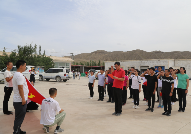 按照活動計劃,近70名黨員干部參觀了五一水庫樞紐工程,在參觀的過程中朱廣超同志介紹了五一水庫的建設情況以及對輪臺縣經濟發展與民生改善的重大意義。隨后,各黨員在五一水庫管理站舉行唱國歌、升國旗、重溫入黨誓詞、黨課交流以及籃球友誼賽等活動。