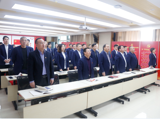 會議首先宣布了李文鴻等三位同志為中共預備黨員的審批結果,舉行了新黨員入黨宣誓儀式,在莊嚴肅穆的《國際歌》奏唱完畢后,集團機關黨支部書記劉清同志帶領三位預備黨員面向黨旗進行了入黨宣誓,李文鴻同志作為預備黨員代表表態發言,表示為加入中國共產黨感到光榮,一定會用黨員的標準嚴格要求自己,全體與會黨員用熱烈的掌聲向其表示了祝賀。