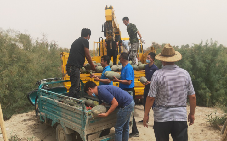 輪臺(tái)縣草湖鄉(xiāng)可可橋村是新疆自治區(qū)級(jí)貧困村,今年因受當(dāng)前疫情影響,該村瓜農(nóng)種植的伽師瓜喜獲豐收但卻面臨滯銷(xiāo)的困境。當(dāng)庫(kù)爾勒銀泉供水有限公司從輪臺(tái)縣扶貧辦公室和駐村工作隊(duì)處得知該情況后,立即決定盡自身所能為村民排憂(yōu)解難,動(dòng)員公司全員開(kāi)展消費(fèi)扶貧工作。7月27日,銀泉供水公司組織人員及車(chē)輛專(zhuān)程前往可可橋村,在瓜農(nóng)的瓜地里現(xiàn)場(chǎng)集中采購(gòu)了近4.5噸重的伽師瓜,幫助當(dāng)?shù)毓限r(nóng)解了燃眉之急。